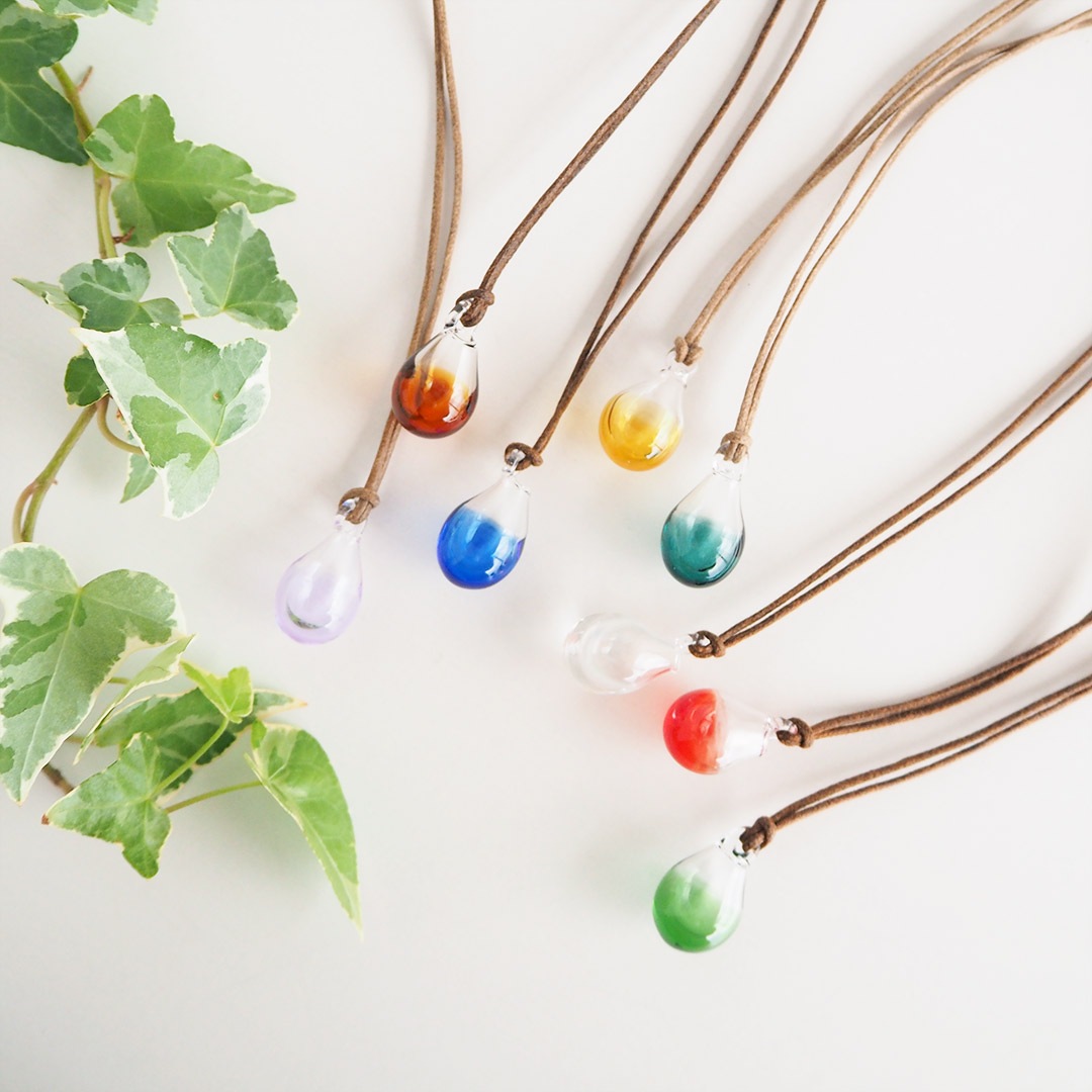 透明度が高く、鮮やかな色彩が楽しいガラスのペンダント。