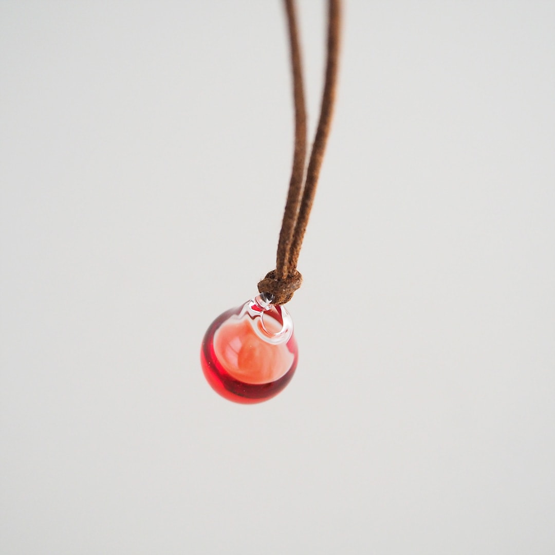 透明度が高く、鮮やかな色彩が楽しいガラスのペンダント。