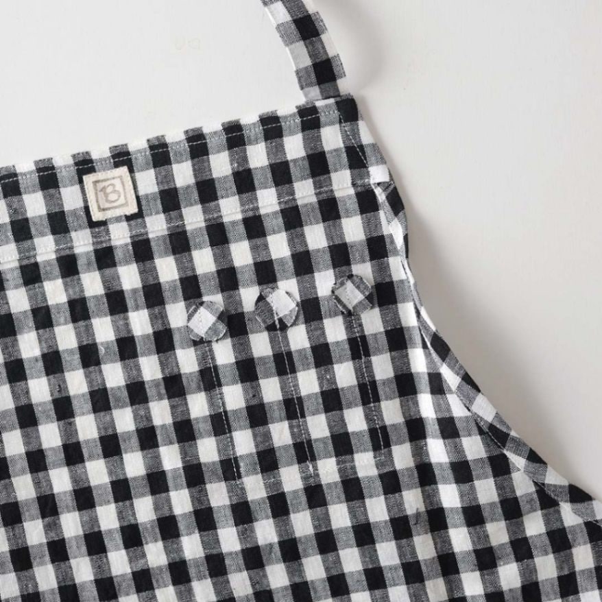 【 働く人の機能的なエプロン 】 料理だけでなくさまざまなシーンで使って欲しいと考えてデザインされたエプロンです。 庭仕事、大工仕事、絵を描いたり、お店の制服として使うならどんな機能が必要か・・・ 体型、性別にこだわらず快適に着られるようにするにはどうしたらいいのか・・・ 機能的かつ快適に使えるようにと考えたどり着いた形です。 家の中でも仕事場でも、きっといい相棒になってくれるでしょう。 右胸にはペンをさせる縦長のポケットが2つ、右前にはスマホやメモ帳が入る大きなフラップ付きポケット、反対側はタオルループがつけられています。 リネン特有のシャリ感と軽さのある生地を使用。 洗濯後もすぐに乾き、使うほどに柔らかく風合いよく変化してきます。