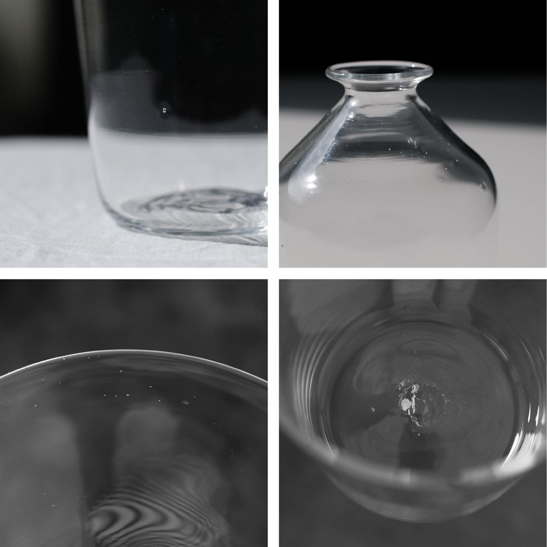 「宙吹き」で作るさこうさんのガラスは、柔らかな形、キリッとした透明感、そして優しい揺らぎがあります。