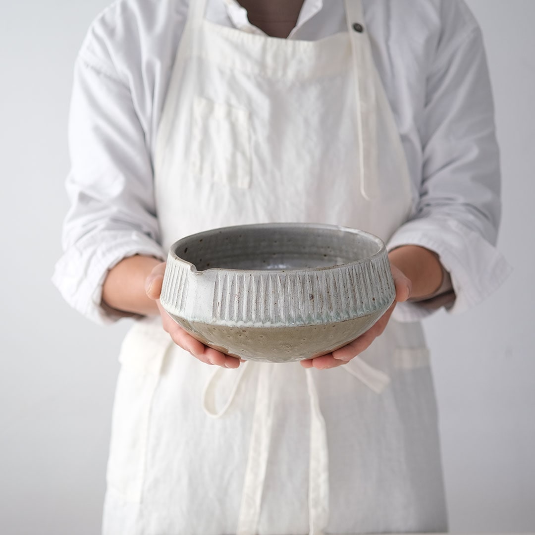 存在感がありながらも落ち着いたデザインの醇窯のすり鉢は、調理だけでなく、煮物やサラダなどの盛り鉢として食卓でもぜひ使ってください。