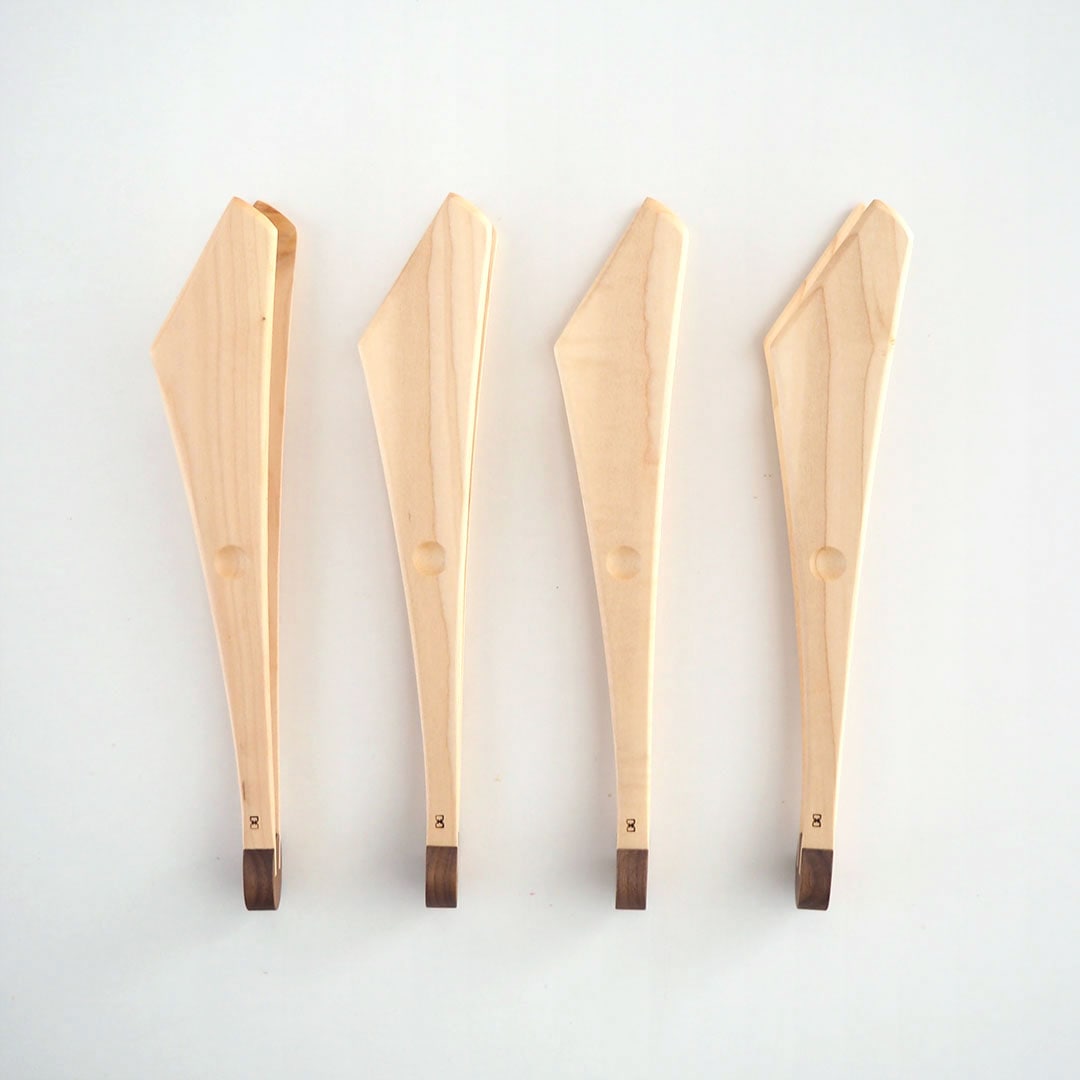 【 羽のような特徴的なデザインの木製トング 】