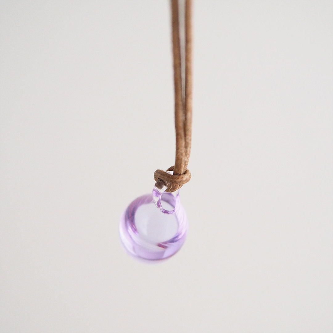 上部の穴にお好みのエッセンシャルオイルや香水を数滴垂らして身につけると、体温でガラスが温まり、ほのかに香ります。