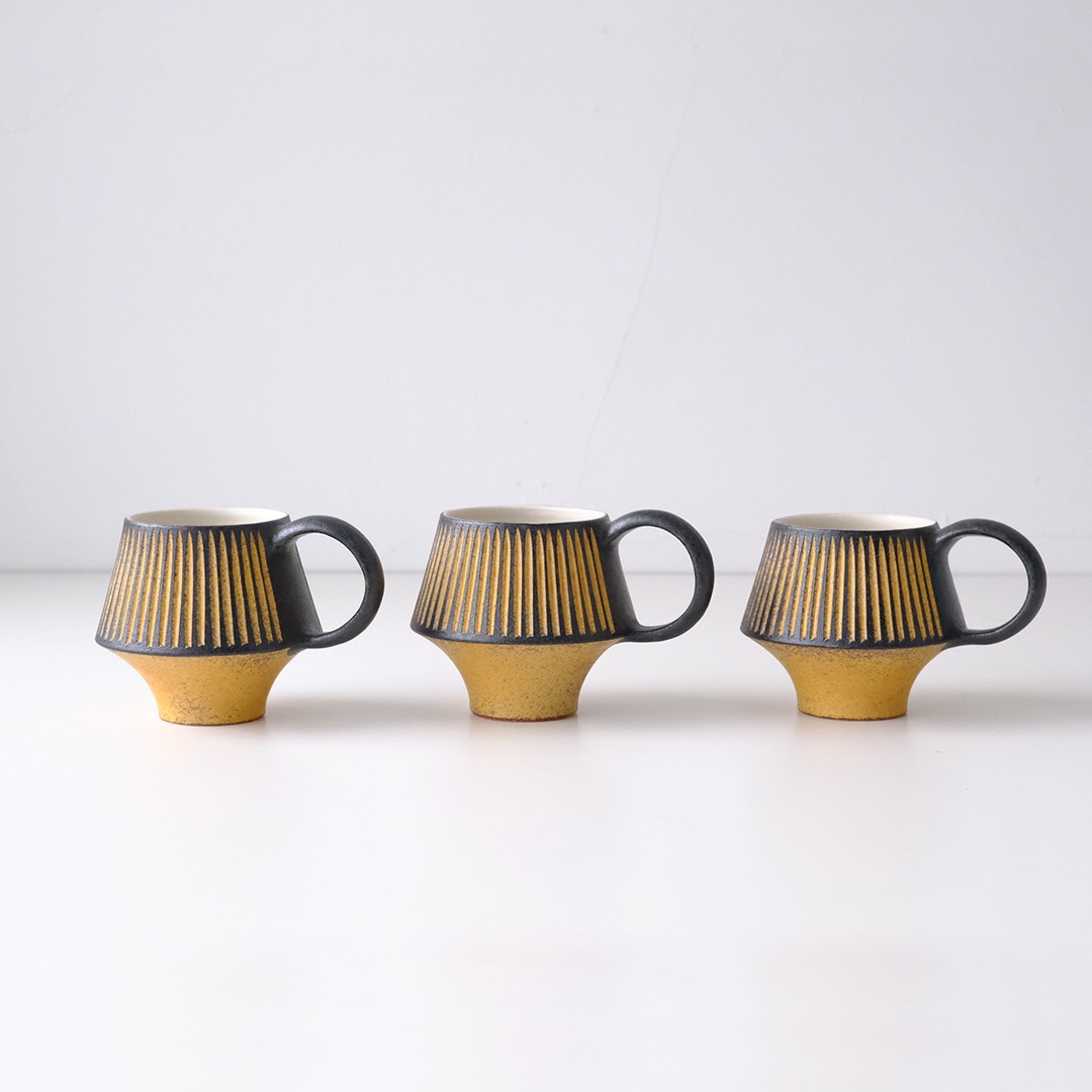 キノコみたいな個性的なシルエットのマグカップです。