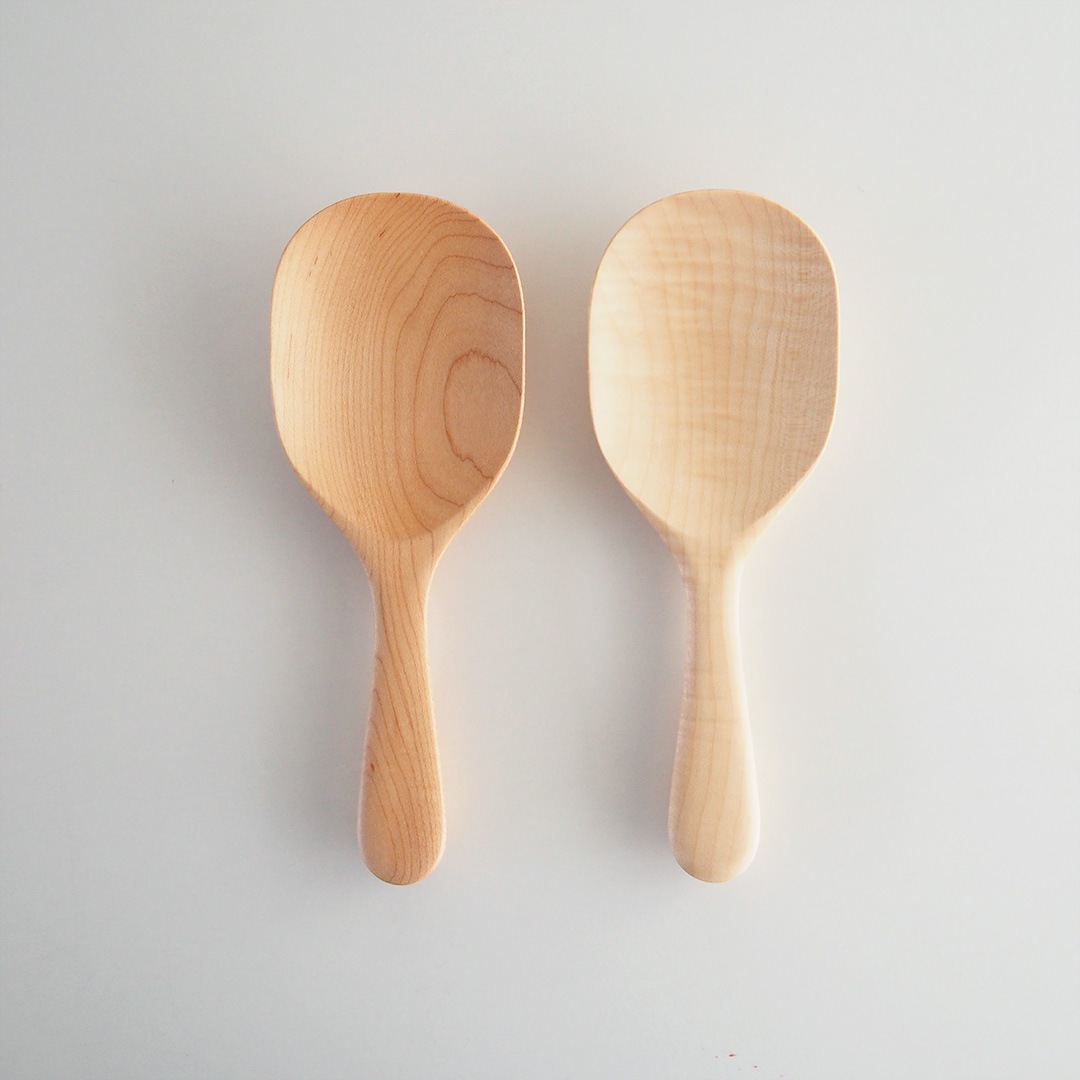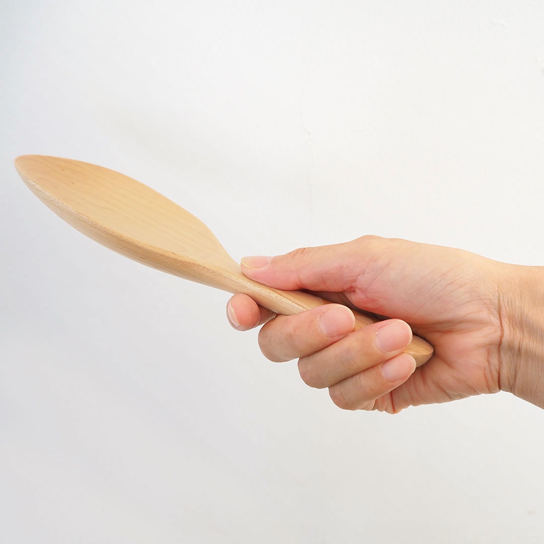 女性でも力を入れやすいように、しゃもじのように柄は短め。