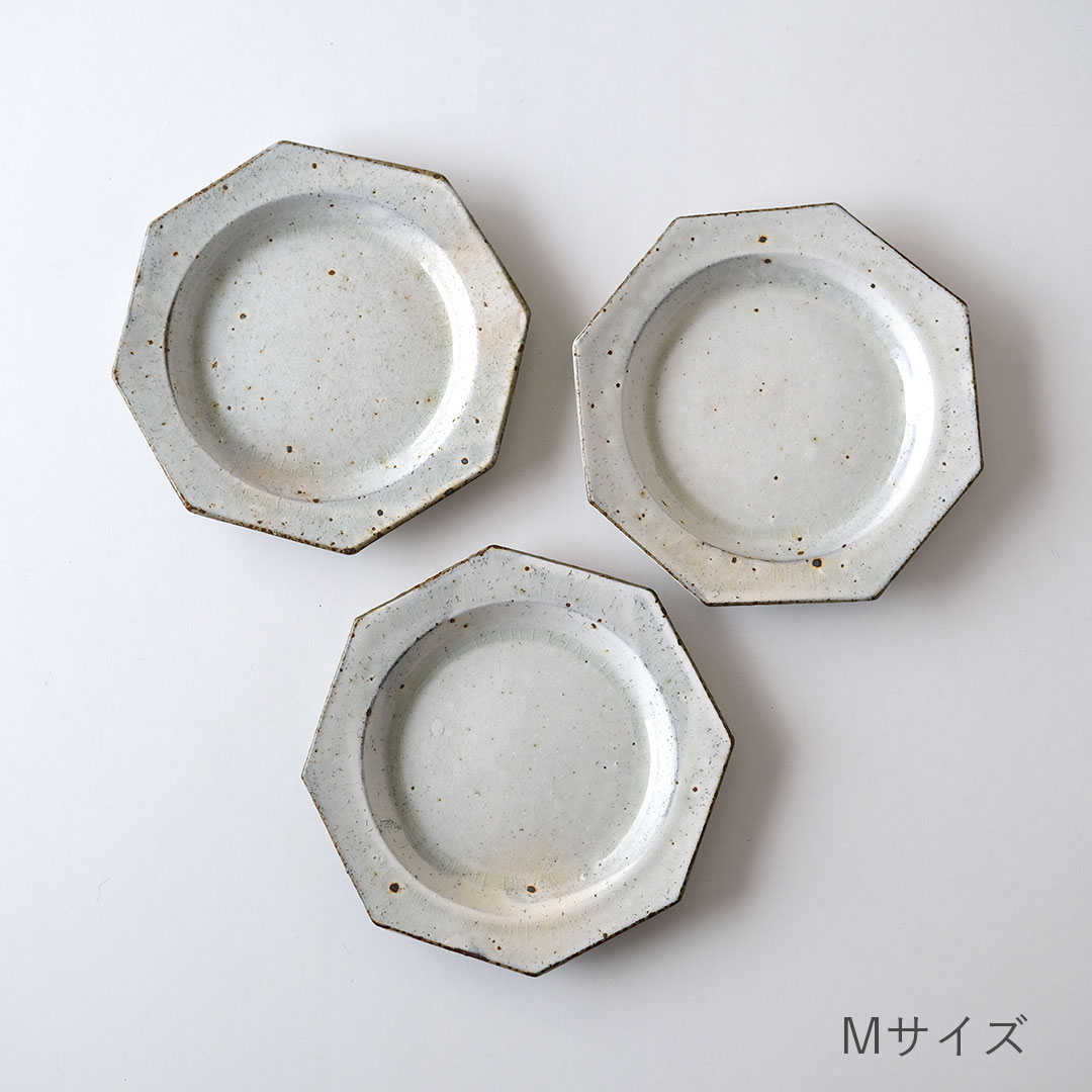 鉄粉引/八角皿/M